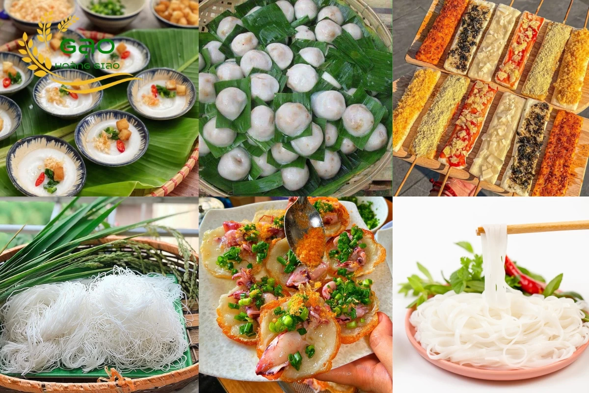 - Bột gạo làm bánh truyền thống Việt Nam: bánh xèo, bánh cuốn, bánh khọt, bánh bèo, bánh đúc, bánh nậm, bánh tẻ,…